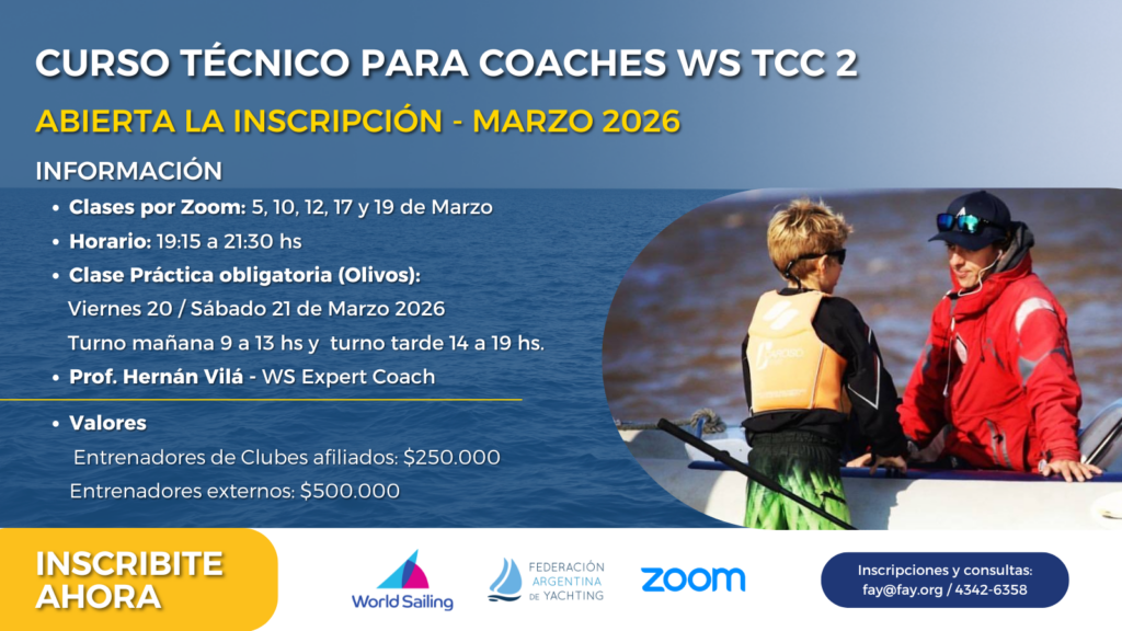 El curso será dictado por Hernán Vila, DTN de Juveniles FAY (WS Coach Training level 1, 2 & 3) y contará con dos especializaciones: en Kite (para instructores IKO/AAK) o en Dinghy y Windsurf.